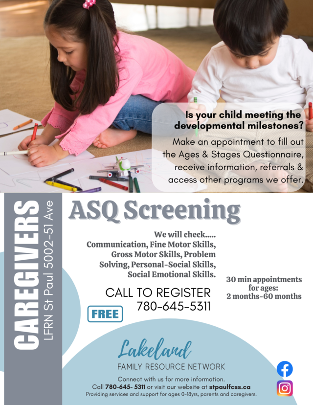 Once completed, a Family Resource Network staff, reviews the questionnaire and provides activities to enhance development and/or make referrals to community agencies, if necessary.